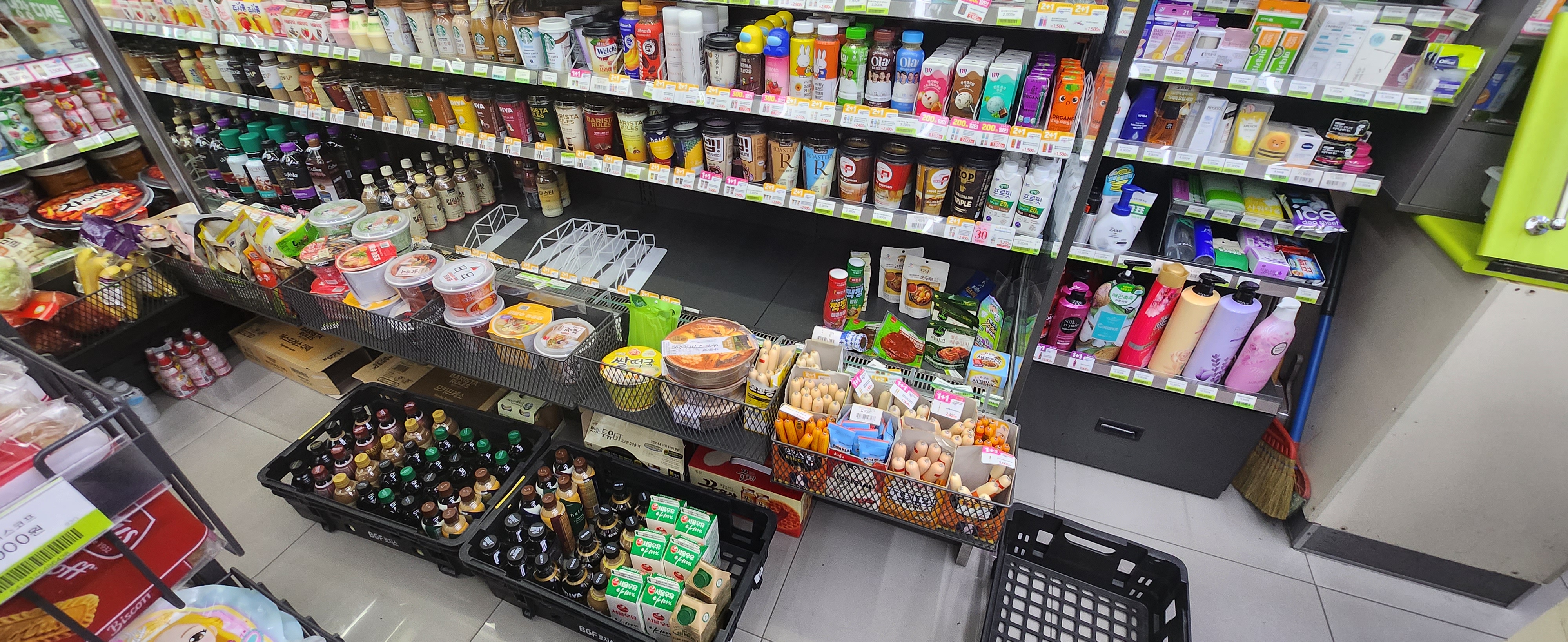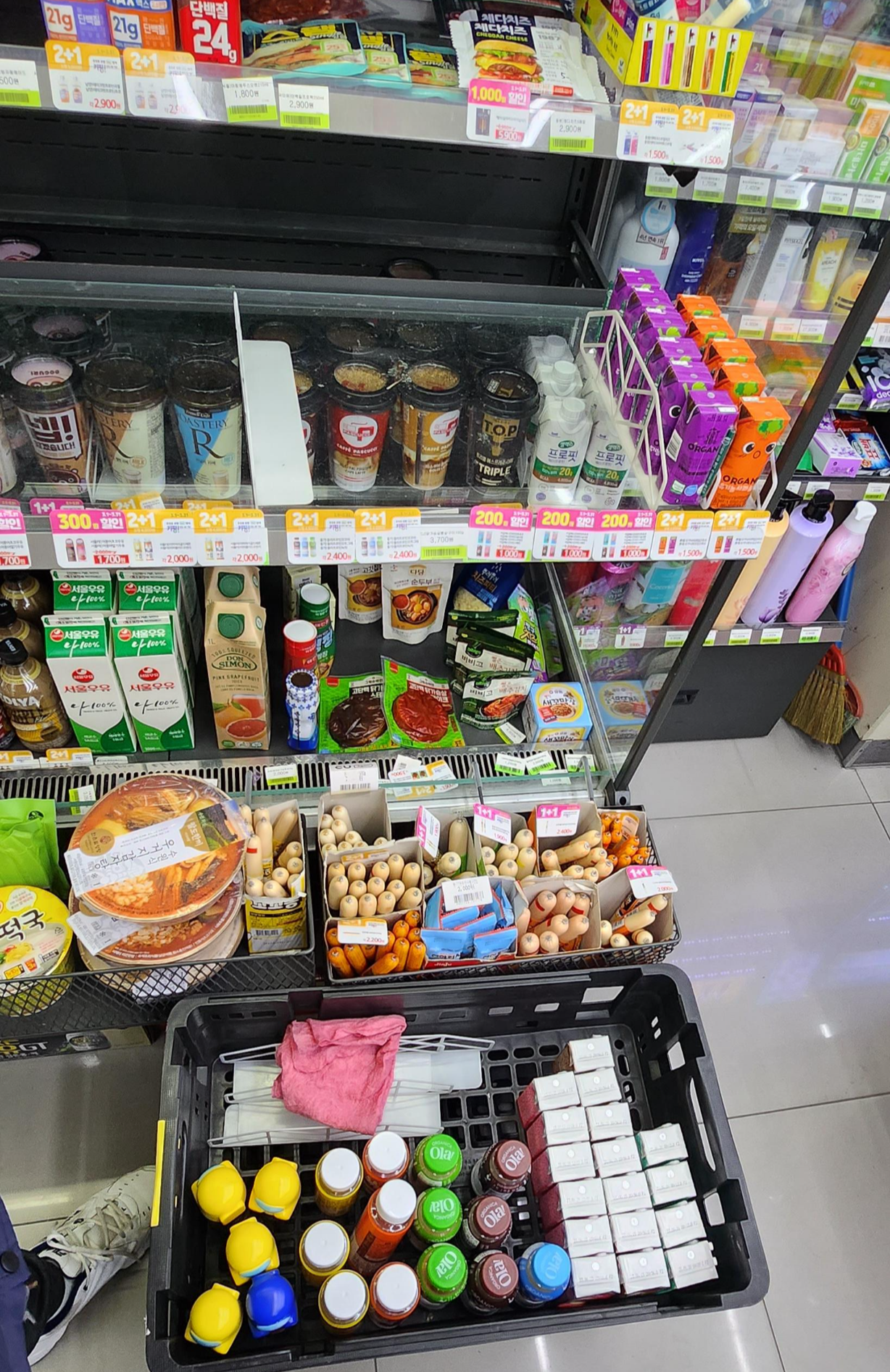 위 행사 태그 붙이는 것에 비하면 정말 쉽다. 보통 우유있는칸 또는 과자 있는 칸, 빵 선반 이런 식으로 특정 구간만 물건다 빼고 걸레로 먼지 쓱 닦아주고 다시 이쁘게 진열하면 끝이다.
