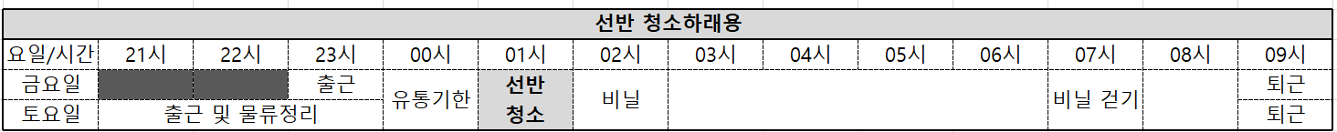 지금까지는 조용한 날인 야간 알바의 하루이다. 지금부터는 행사기간 전 날에 출근하는 불쌍한 알바 스케줄을 소개한다.
