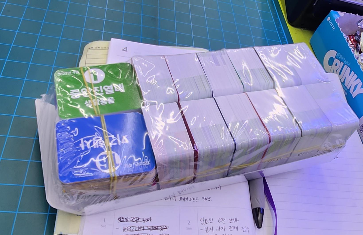 물류 아저씨가 쓰윽 들어와서 재고가 적혀있는 종이와 박스 2~3개 정도 던지고 가시는데 종이에 있는 바코드를 찍으면