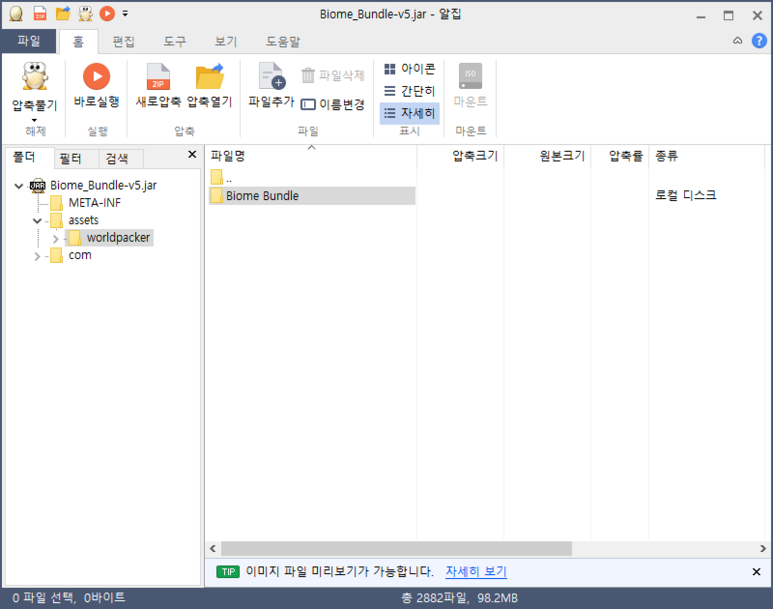 모드 폴더에 넣은 바이옴 월드 목록이 새겨져있습니다.